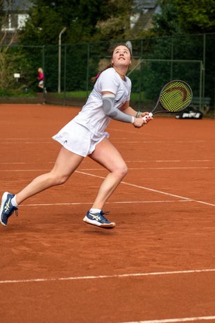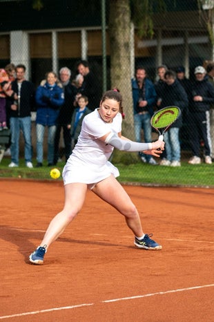 Voor de opening van het 100-jarig bestaan van mijn tennisclub GLTC Het Spieghel speelde Loes een clinic met Sjeng Schalken en Michiel Schapers. Heerlijk vond ze het om punten te spelen tegen een soepel spelende Sjeng! En dan ook nog voor enthousiast publiek.